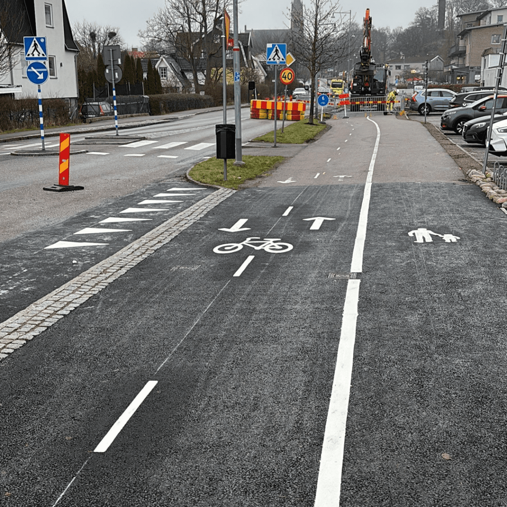 I samarbete med Mölndal stad bygger VMA hastighetssäkrade passager och GC-banor. Efter arbeten med terrakomp, kantsten, skyltar, asfalt och linjemålning har Mölndalsborna ännu fler trygga mötesplatser för trafikanter. Lagom till ledigheter tar vi bort trafikavstängningar och öppnar upp gatorna igen.
